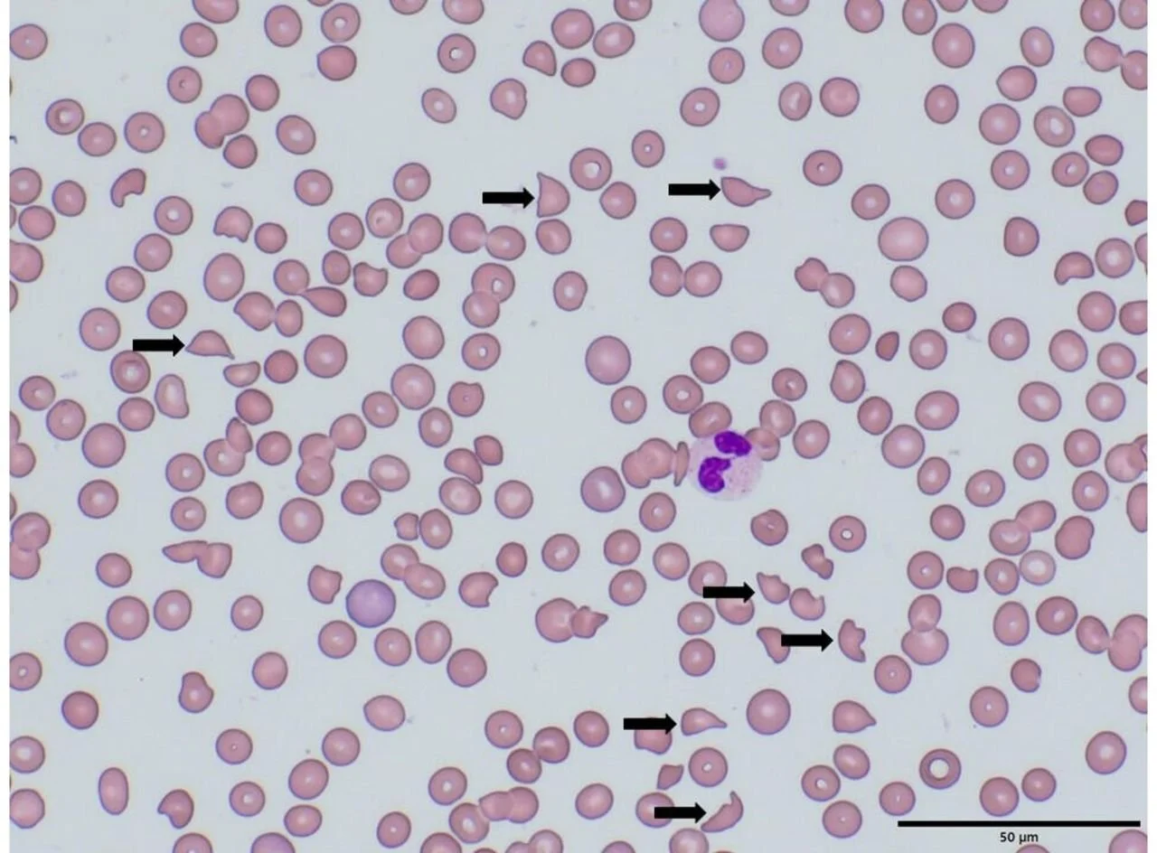 Image Source: Peripheral blood smear of a patient with microangiopathic haemolytic anemia with schistocytes in HUS (arrows). ResearchGate.